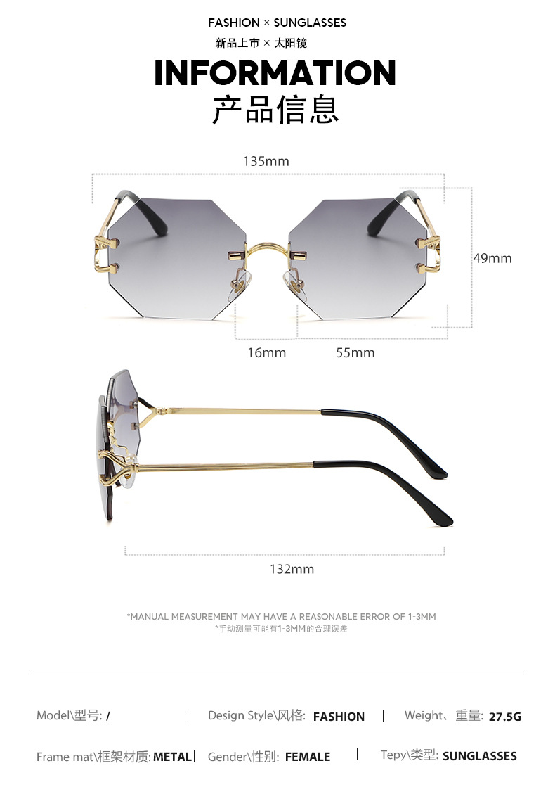 ● 가족 및 친구를 위한 선물: 클래식 프레임리스 선글라스는 사랑하는 가족과 좋은 친구에게 줄 수 있는 최고의 선물 중 하나입니다.