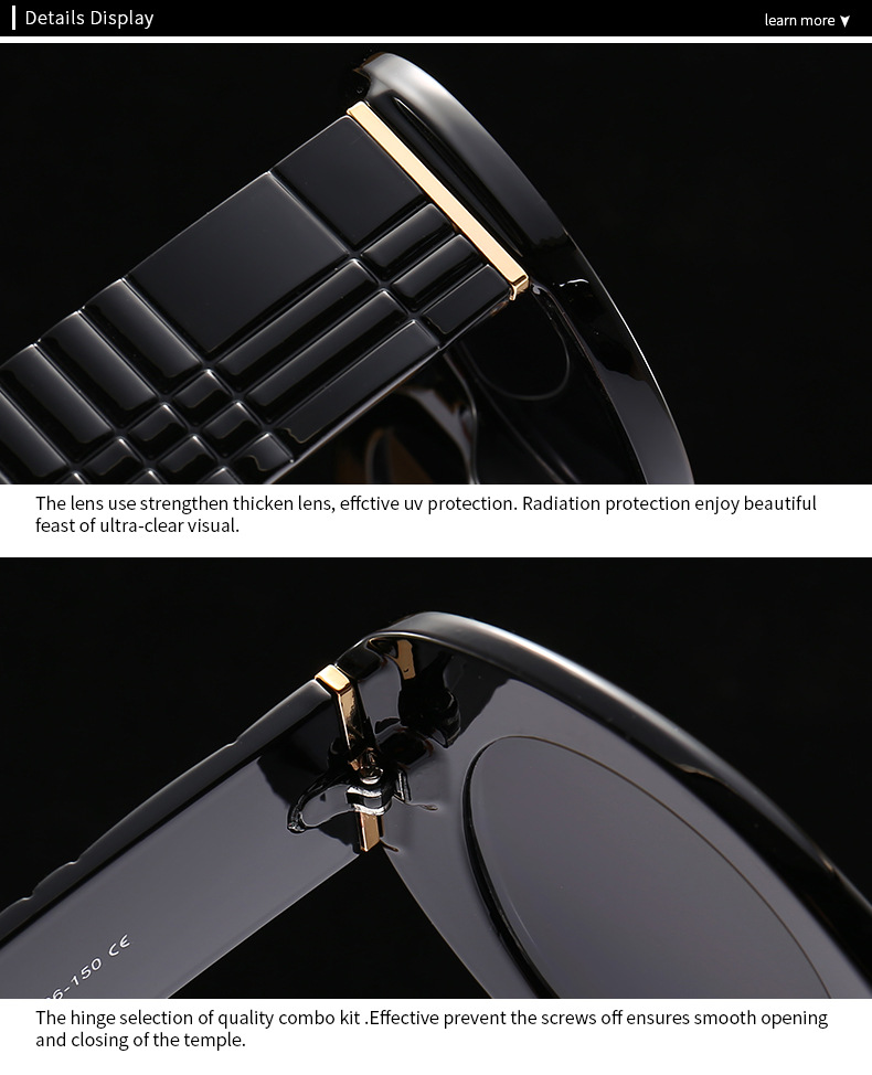 ● Specula Qualitatis Summae et Usus Facilis: Levis et commoda structura, faciei humanae amica, quilibet frui potest venustate et protectione UV400 harum umbrarum praestantium. Materia bonae qualitatis, magna vi et coefficiente impactus, magis amica est cuti, levis et durabilis; spero te aptationem commodiorem praebere posse.