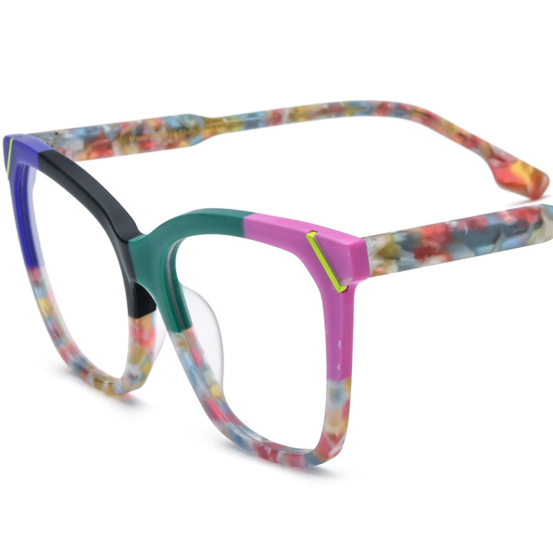 RUISEN’S Custom Multicolor Patchwork Square Eyeglasses Frame 19343