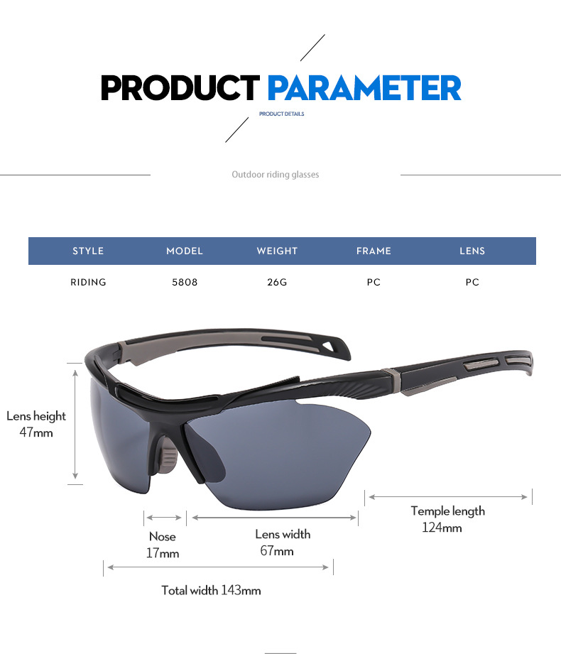 Kính mát đạp xe ngoài trời RUISEN'S Sports có lớp phủ chống gió và che nắng BL5808